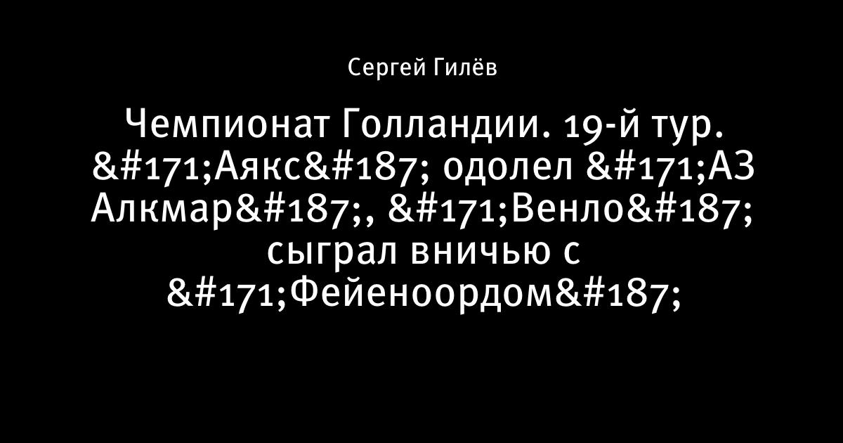 Чемпионат Голландии. 19-й тур. «Аякс» одолел «АЗ Алкмар», «Венло» сыграл вничью с «Фейеноордом»