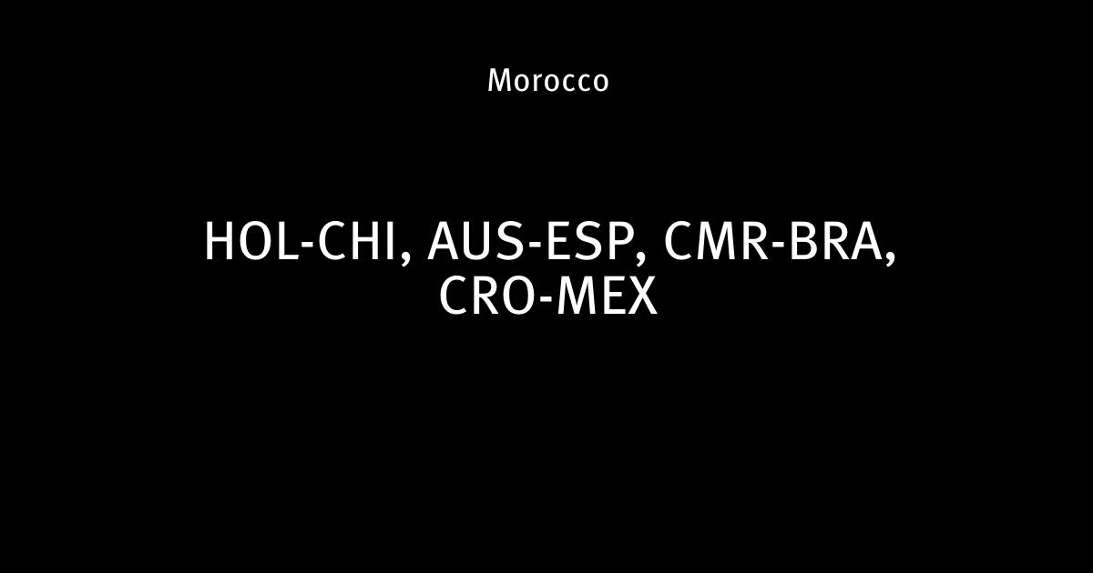 HOL-CHI, AUS-ESP, CMR-BRA, CRO-MEX