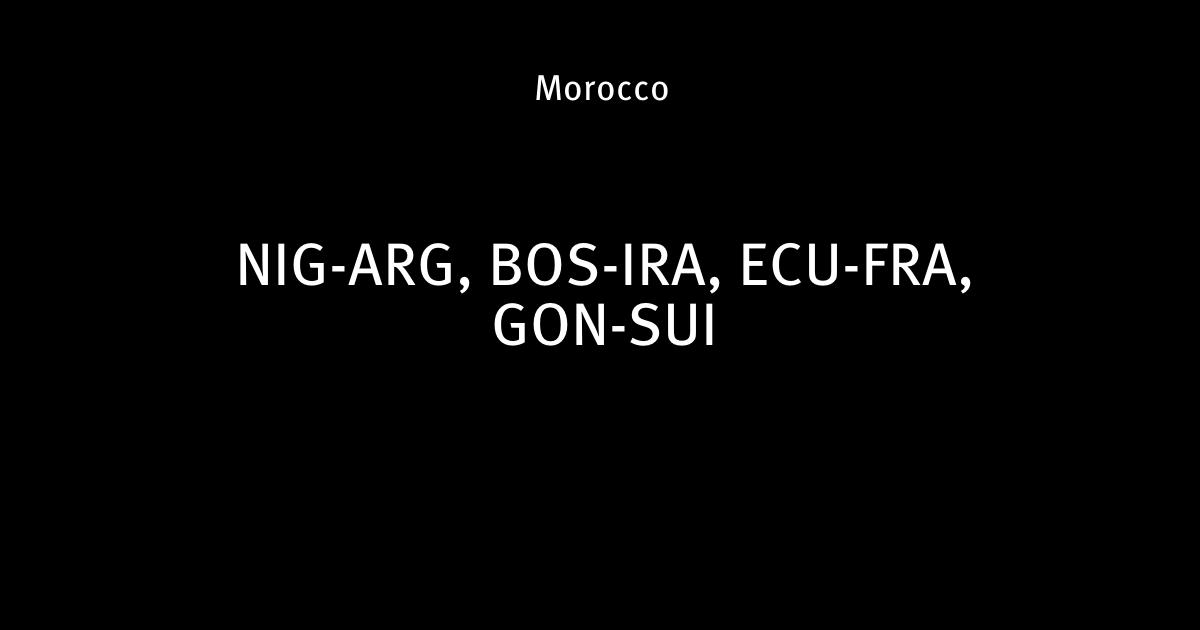 NIG-ARG, BOS-IRA, ECU-FRA, GON-SUI