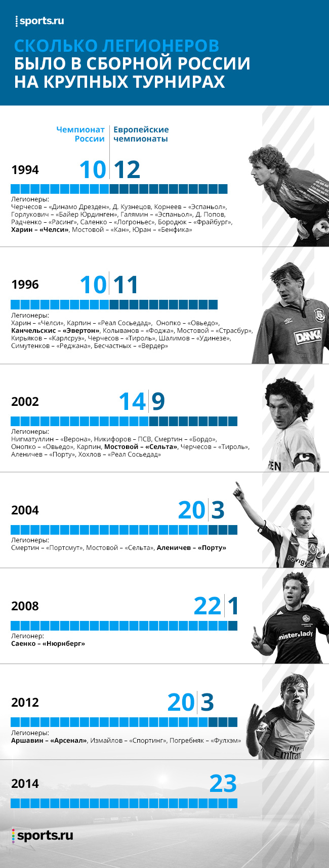 Пардон, но мы добились лучшего результата, имея всего одного легионера Саенко на Евро-2008. Так что эта инфографика вообще ни о чем не говорит.
