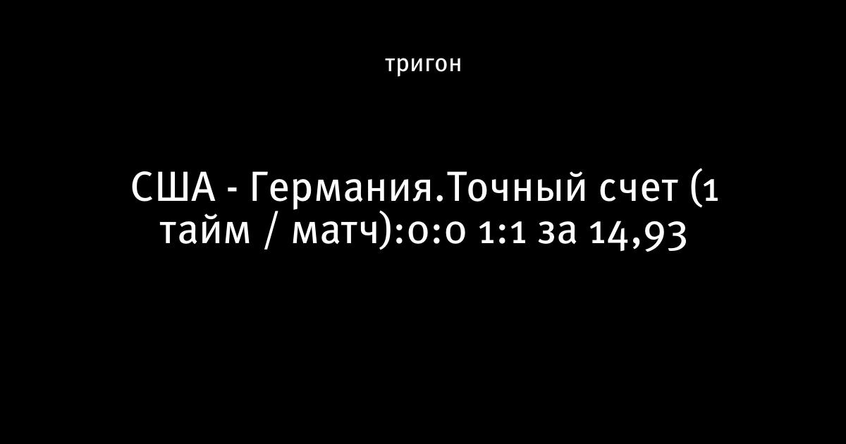 США - Германия.Точный счет (1 тайм / матч):0:0 1:1 за 14,93