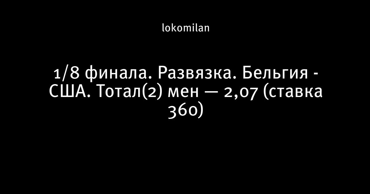 1/8 финала. Развязка. Бельгия - США. Тотал(2) мен — 2,07 (ставка 360)