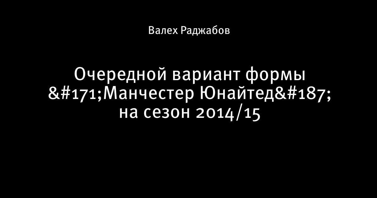 2 июля 2014, 12:55 Очередной вариант формы «Манчестер Юнайтед» на сезон 2014/15 Автор Валех Раджабов Этот пост опубликован в блоге на Трибуне Sports.ru. Присоединяйтесь к крупнейшему сообществу спортивных болельщиков! Другие посты блога Видеоблог «Юнайтед» Манчестер Юнайтед