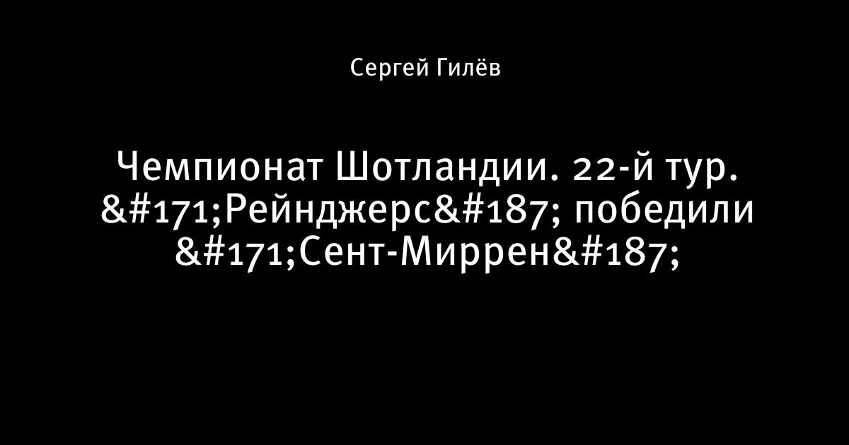28 января 2010, 01:16 Чемпионат Шотландии. 22-й тур. «Рейнджерс» победили «Сент-Миррен» Сент Миррен Рейнджерс 0:2 0:1 Дэвис (2) 0:2 Ново (86) Автор Сергей Гилёв Этот пост опубликован в блоге на Трибуне Sports.ru. Присоединяйтесь к крупнейшему сообществу спортивных болельщиков! Другие посты блога Разборки в олимпийском Париже