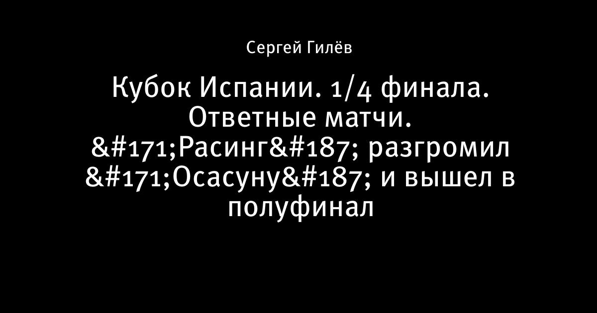 28 января 2010, 01:46 Кубок Испании. 1/4 финала. Ответные матчи. «Расинг» разгромил «Осасуну» и вышел в полуфинал Осасуна Расинг 0:3 0:1 Хиско (6) 0:2 Энрике (23) 0:3 Каналес (79) Автор Сергей Гилёв Этот пост опубликован в блоге на Трибуне Sports.ru. Присоединяйтесь к крупнейшему сообществу спортивных болельщиков! Другие посты блога Разборки в олимпийском Париже