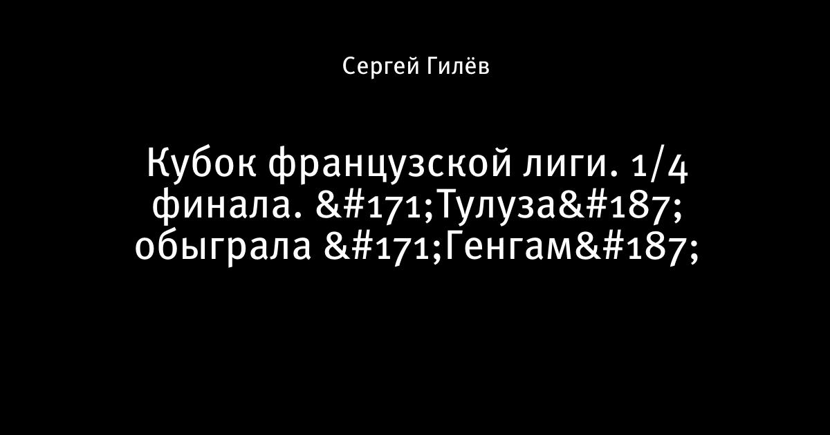 28 января 2010, 00:37 Кубок французской лиги. 1/4 финала. «Тулуза» обыграла «Генгам» Генгам Д2 Тулуза 0:1 0:1 Эбондо (54) Автор Сергей Гилёв Этот пост опубликован в блоге на Трибуне Sports.ru. Присоединяйтесь к крупнейшему сообществу спортивных болельщиков! Другие посты блога Разборки в олимпийском Париже