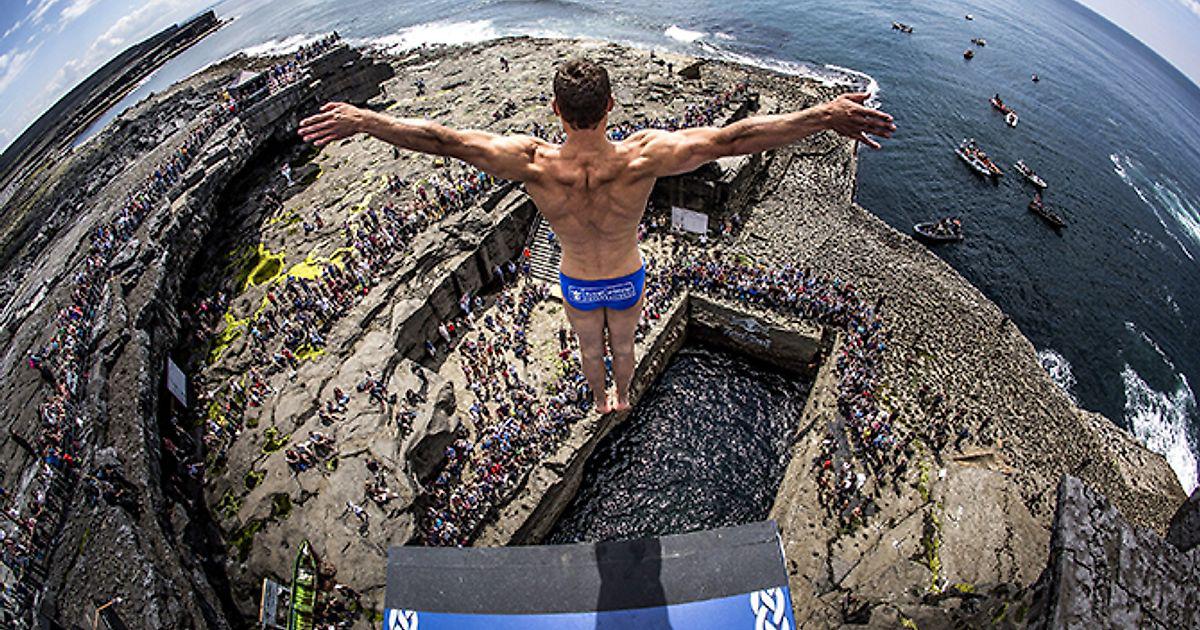 На ирландском острове Инис Мор прошел этап Мировой серии Red Bull Cliff Diving, где спортсмены-хайдайверы прыгали с высоты 28 метров в коварное «Логово Змея». Своими сумасшедшими прыжками запомнились многие – в том числе чех Михал Навратил (на фото).