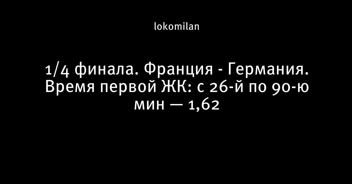 1/4 финала. Франция - Германия. Время первой ЖК: с 26-й по 90-ю мин — 1,62
