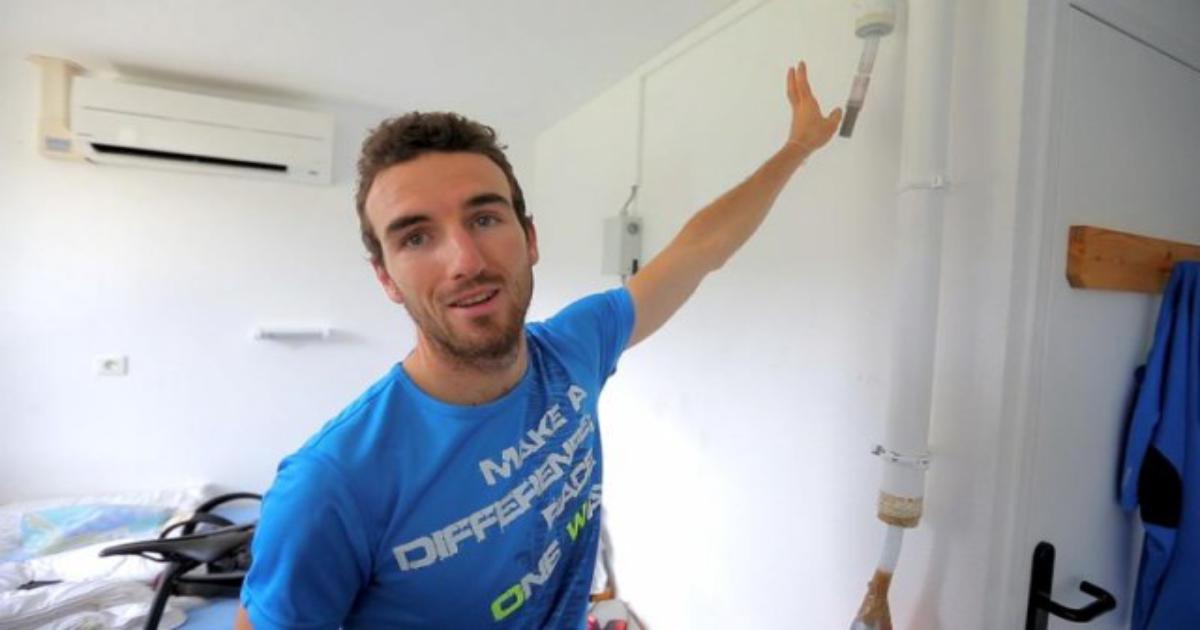 – Как Вы можете слышать, это шумная система. Воздух подается наружу через эту трубу, на крыше есть специальная камера – похожа на большую коробку, она удаляет кислород из воздуха, и можно услышать шипящий звук из другой трубы – воздух возвращается, но без кислорода. Есть человек, который проверяет все комнаты. Регулятор находится здесь. Единственная особенность – я должен постоянно держать дверь закрытой. На этой неделе – мой первый опыт, много новых ощущений, особенно во время тренировок. В комнате я не чувствую разницы, я же не тренируюсь здесь – поэтому нет ощущения, что я задыхаюсь. По сравнению с открытым воздухом разница большая, но самые странные ощущения все-таки на улице, во время тренировок.