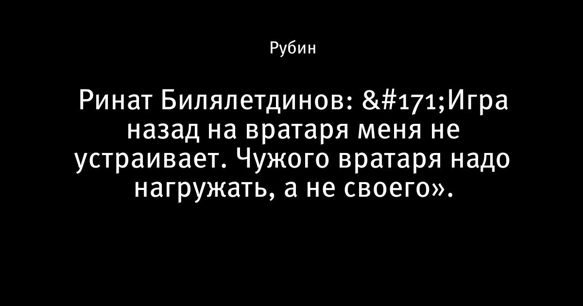 Ринат Билялетдинов: «Игра назад на вратаря меня не устраивает. Чужого вратаря надо нагружать, а не своего».