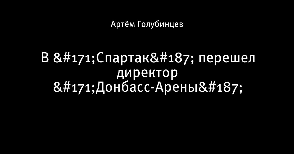 11 июля 2014, 21:32 В «Спартак» перешел директор «Донбасс-Арены» Автор Артём Голубинцев Этот пост опубликован в блоге на Трибуне Sports.ru. Присоединяйтесь к крупнейшему сообществу спортивных болельщиков! Другие посты блога Телевизор 3.0 видео Донбасс Арена Спартак