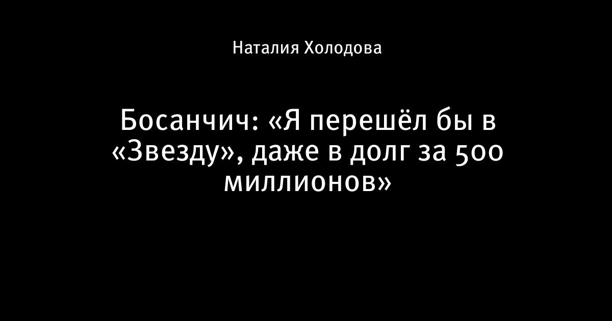 Босанчич: «Я перешёл бы в «Звезду», даже в долг за 500 миллионов»