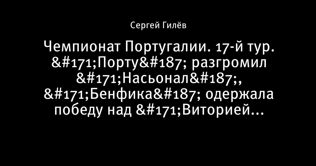 Чемпионат Португалии. 17-й тур. «Порту» разгромил «Насьонал», «Бенфика» одержала победу над «Виторией Гимараэш»