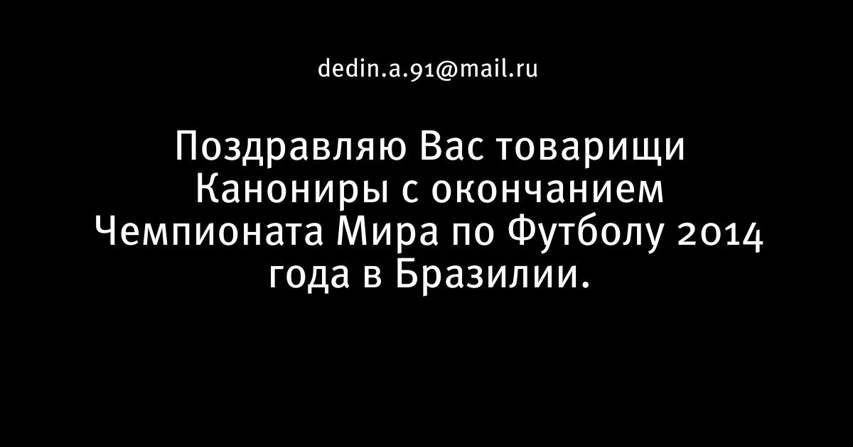 Поздравляю Вас товарищи Канониры с окончанием Чемпионата Мира по Футболу 2014 года в Бразилии.