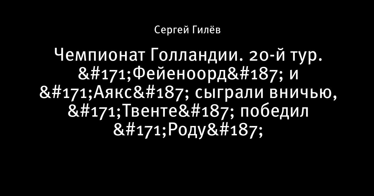 Чемпионат Голландии. 20-й тур. «Фейеноорд» и «Аякс» сыграли вничью, «Твенте» победил «Роду»