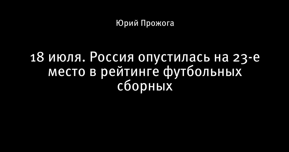 18 июля. Россия опустилась на 23-е место в рейтинге футбольных сборных