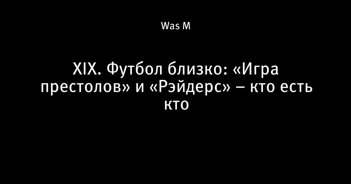 XIX. Футбол близко: «Игра престолов» и «Рэйдерс» – кто есть кто