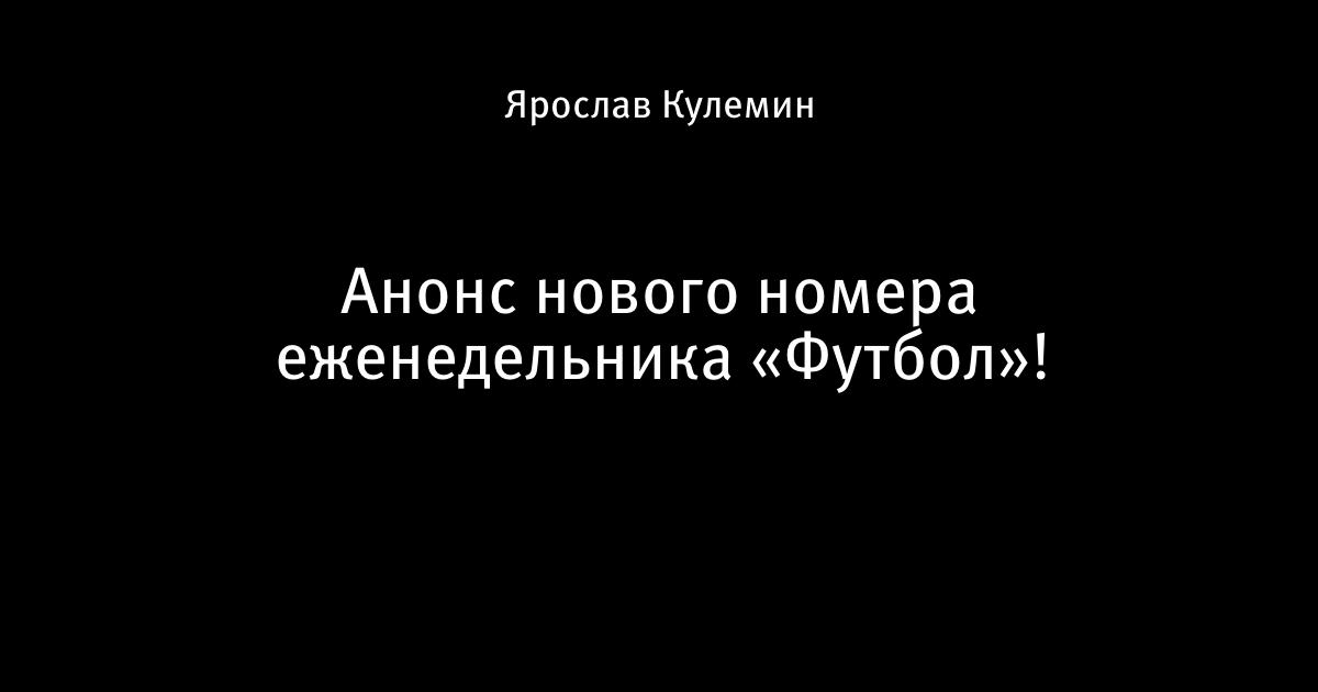 Анонс нового номера еженедельника «Футбол»!