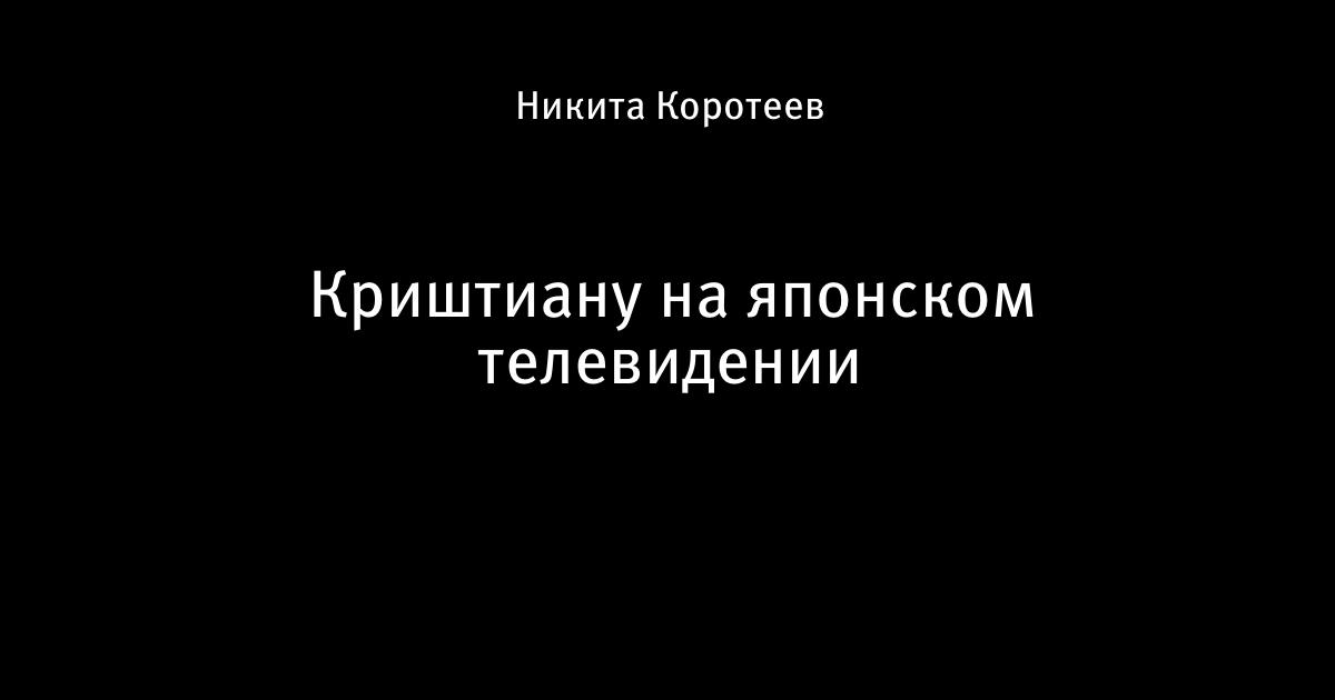 23 июля 2014, 10:57 Криштиану на японском телевидении Автор Никита Коротеев Этот пост опубликован в блоге на Трибуне Sports.ru. Присоединяйтесь к крупнейшему сообществу спортивных болельщиков! Другие посты блога Вы это видели? Криштиану Роналду