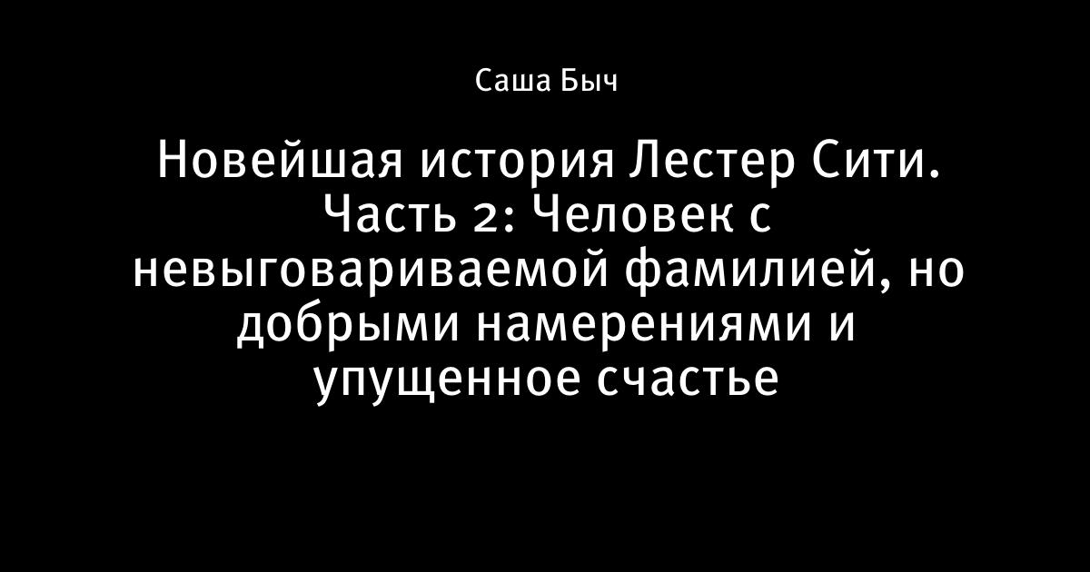 Новейшая история Лестер Сити. Часть 2: Человек с невыговариваемой фамилией, но добрыми намерениями и упущенное счастье