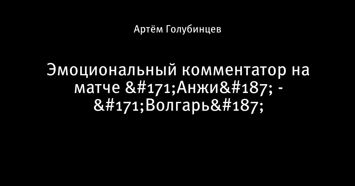 27 июля 2014, 23:12 Эмоциональный комментатор на матче «Анжи» - «Волгарь» Автор Артём Голубинцев Этот пост опубликован в блоге на Трибуне Sports.ru. Присоединяйтесь к крупнейшему сообществу спортивных болельщиков! Другие посты блога Телевизор 3.0 видео Анжи Волгарь Первая лига