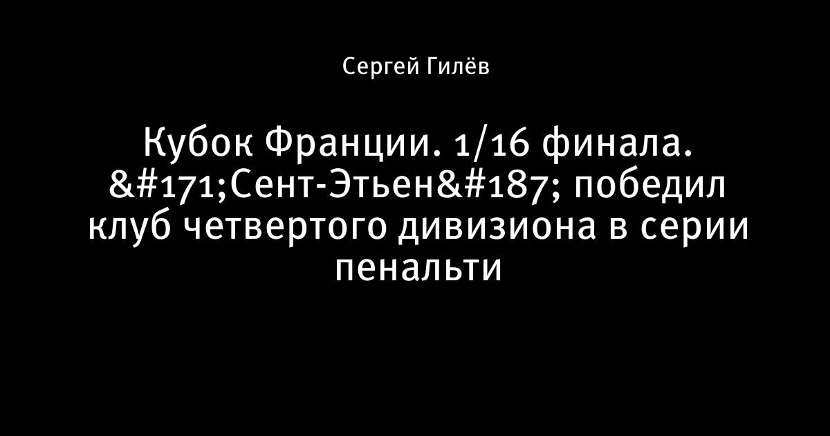 4 февраля 2010, 01:02 Кубок Франции. 1/16 финала. «Сент-Этьен» победил клуб четвертого дивизиона в серии пенальти Виллефранч Сер Саон Сент-Этьен 2:2 (0:0, 0:0, 0:0, 0:0), по пенальти – 1:3 Серия пенальти: 1:0, 1:1, 1:2, 1:3. Автор Сергей Гилёв Этот пост опубликован в блоге на Трибуне Sports.ru. Присоединяйтесь к крупнейшему сообществу спортивных болельщиков! Другие посты блога Разборки в олимпийском Париже