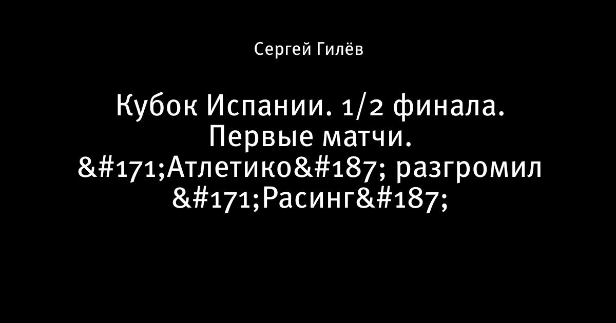 5 февраля 2010, 02:08 Кубок Испании. 1/2 финала. Первые матчи. «Атлетико» разгромил «Расинг» Атлетико Расинг 4:0 1:0 Симао (9) 2:0 Рейес (40) 3:0 Форлан (62, пенальти) 4:0 Форлан (71, пенальти) Севилья Хетафе 2:0 1:0 Луис Фабиано (45), 2:0 Хесус Навас (80) Автор Сергей Гилёв Этот пост опубликован в блоге на Трибуне Sports.ru. Присоединяйтесь к крупнейшему сообществу спортивных болельщиков! Другие посты блога Разборки в олимпийском Париже