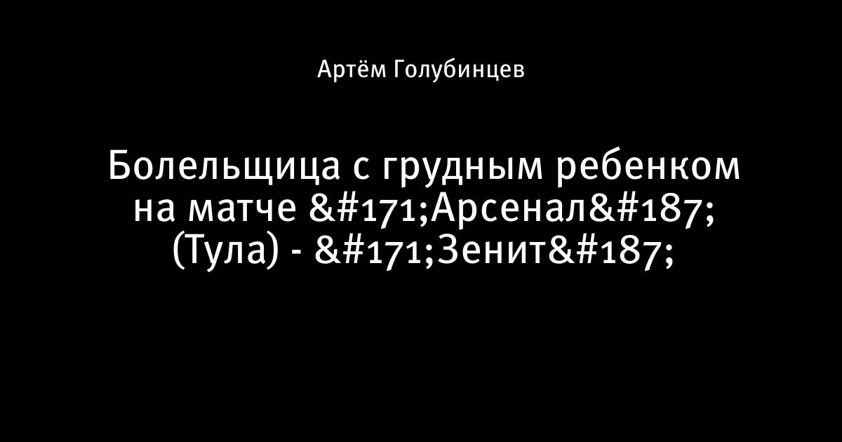 2 августа 2014, 19:52 Болельщица с грудным ребенком на матче «Арсенал» (Тула) - «Зенит» Автор Артём Голубинцев Этот пост опубликован в блоге на Трибуне Sports.ru. Присоединяйтесь к крупнейшему сообществу спортивных болельщиков! Другие посты блога Вы это видели? видео премьер-лига Россия болельщики Арсенал Тула Зенит