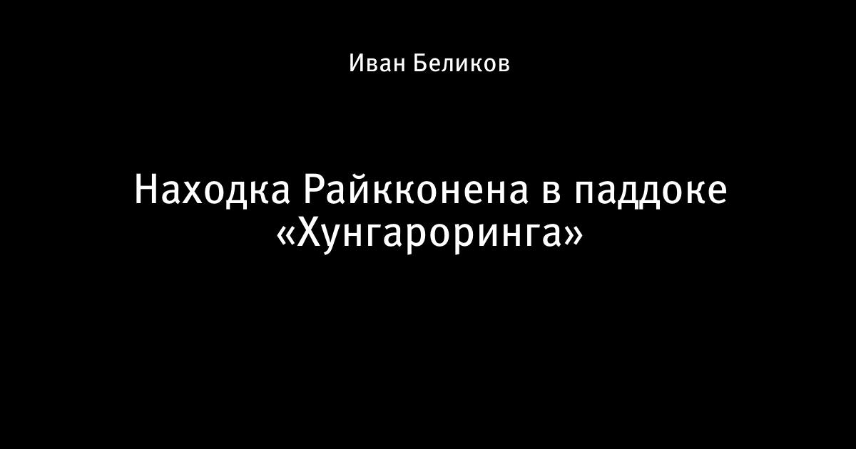 3 августа 2014, 19:00 Находка Райкконена в паддоке «Хунгароринга» 1 Автор Иван Беликов Этот пост опубликован в блоге на Трибуне Sports.ru. Присоединяйтесь к крупнейшему сообществу спортивных болельщиков! Другие посты блога Крутой поворот Кими Райкконен видео Формула-1