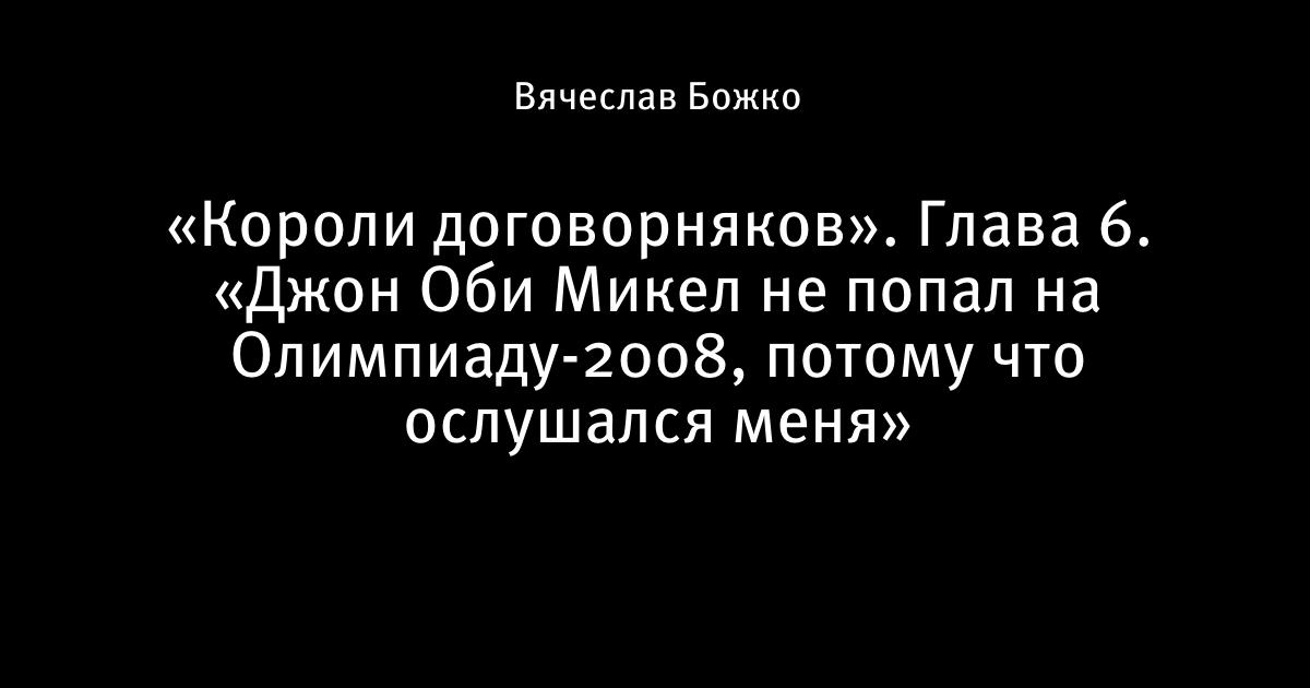 «Короли договорняков». Глава 6. «Джон Оби Микел не попал на Олимпиаду-2008, потому что ослушался меня»