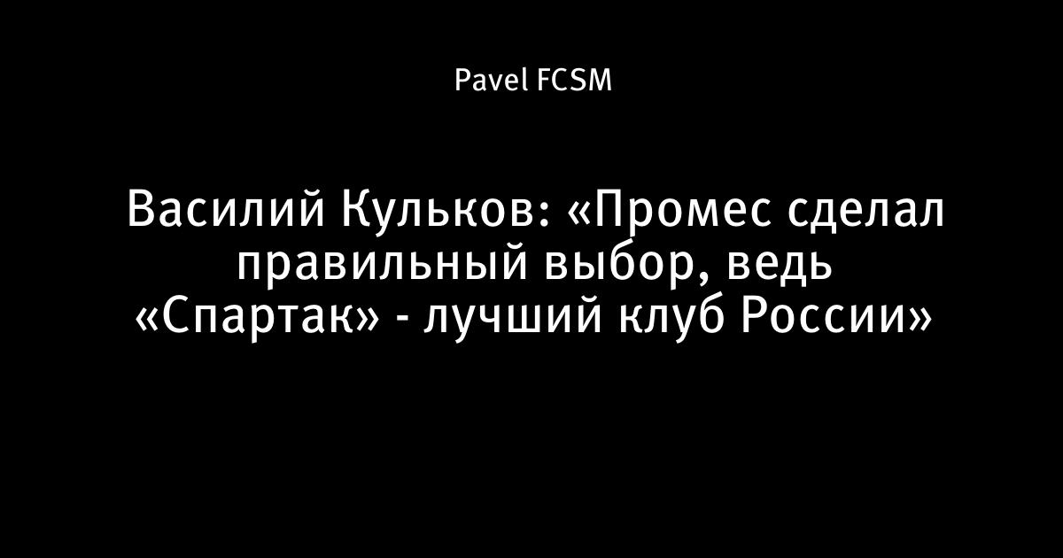 Василий Кульков: «Промес сделал правильный выбор, ведь «Спартак» - лучший клуб России»