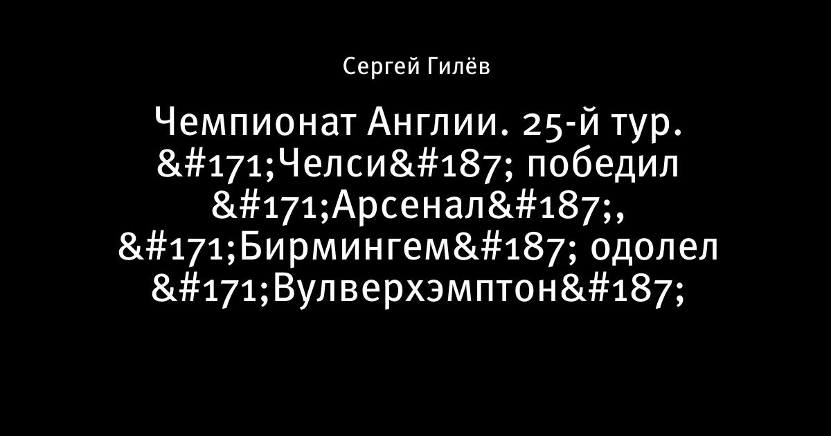 Чемпионат Англии. 25-й тур. «Челси» победил «Арсенал», «Бирмингем» одолел «Вулверхэмптон»