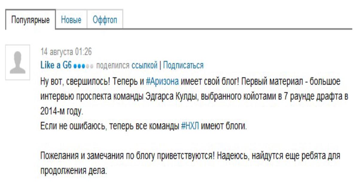 В нынешнем виде, лента Оффтоп выглядит особенно занятно во время какого-то увлекательного спортивного события. Матч, например. БОльшая часть статусов по этой теме оказывается именно в ленте Оффтоп. Потому что на эмоциях, по горячим следам, люди особенно не хотят тратить время на простановку тегов.