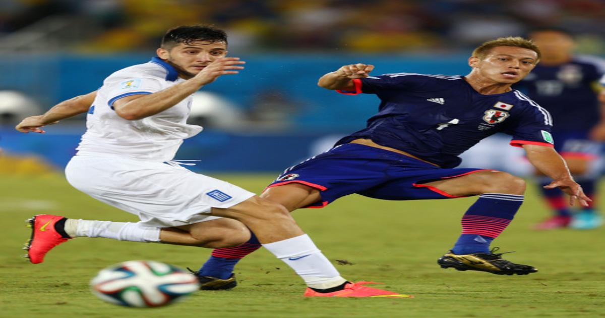 На фото: Манолас борется против Хонды в матче ЧМ