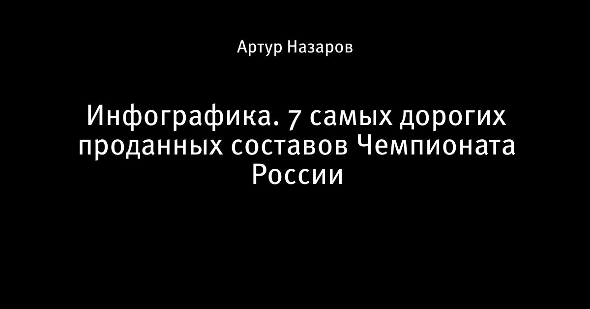 16 августа 2014, 11:00 Инфографика. 7 самых дорогих проданных составов Чемпионата России Загружаю... Загружаю... Автор Артур Назаров Этот пост опубликован в блоге на Трибуне Sports.ru. Присоединяйтесь к крупнейшему сообществу спортивных болельщиков! Другие посты блога Slavo room Локомотив ЦСКА Спартак Зенит трансферы