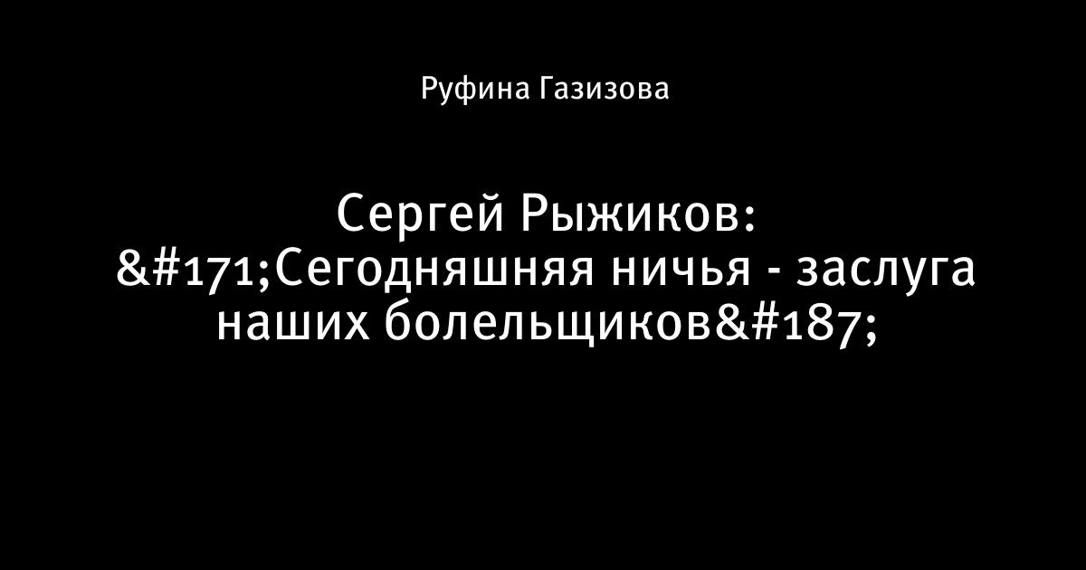 17 августа 2014, 22:44 Сергей Рыжиков: «Сегодняшняя ничья - заслуга наших болельщиков» 1 Автор Руфина Газизова Этот пост опубликован в блоге на Трибуне Sports.ru. Присоединяйтесь к крупнейшему сообществу спортивных болельщиков! Другие посты блога Футбольный клуб «Рубин» Рубин Локомотив Сергей Рыжиков