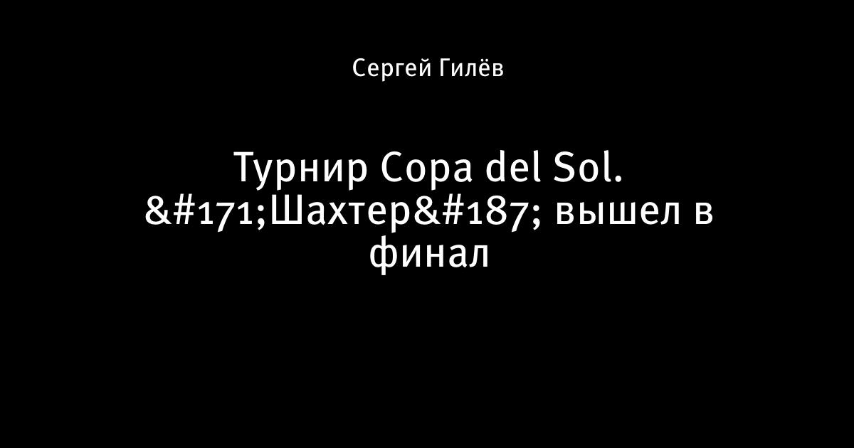 9 февраля 2010, 04:19 Турнир Copa del Sol. «Шахтер» вышел в финал Кальмар Швеция  Шахтер Украина  0:2 0:1  Жадсон (30, с пен.), 0:2  Адриано (79) Автор Сергей Гилёв Этот пост опубликован в блоге на Трибуне Sports.ru. Присоединяйтесь к крупнейшему сообществу спортивных болельщиков! Другие посты блога Разборки в олимпийском Париже