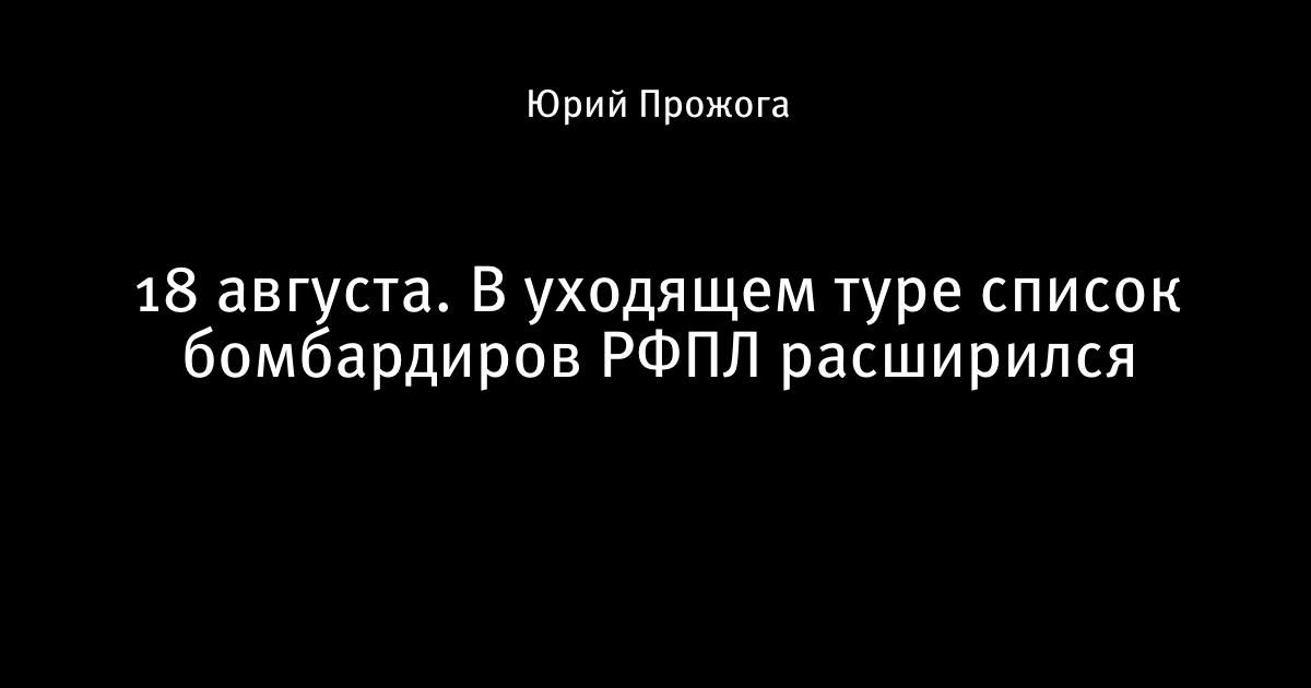 18 августа 2014, 21:39 18 августа. В уходящем туре список бомбардиров РФПЛ расширился Автор Юрий Прожога Этот пост опубликован в блоге на Трибуне Sports.ru. Присоединяйтесь к крупнейшему сообществу спортивных болельщиков! Другие посты блога Рисую спорт Кевин Кураньи Александр Кокорин Артем Дзюба Организация РПЛ Халк