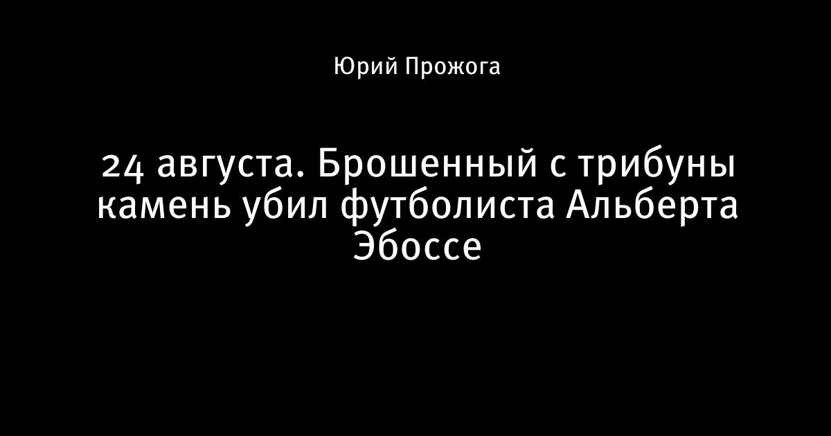 24 августа 2014, 14:33 24 августа. Брошенный с трибуны камень убил футболиста Альберта Эбоссе Автор Юрий Прожога Этот пост опубликован в блоге на Трибуне Sports.ru. Присоединяйтесь к крупнейшему сообществу спортивных болельщиков! Другие посты блога Рисую спорт