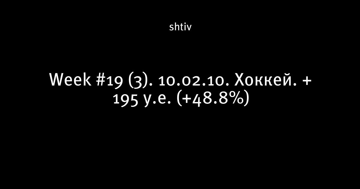 Week #19 (3). 10.02.10. Хоккей. + 195 у.е. (+48.8%)