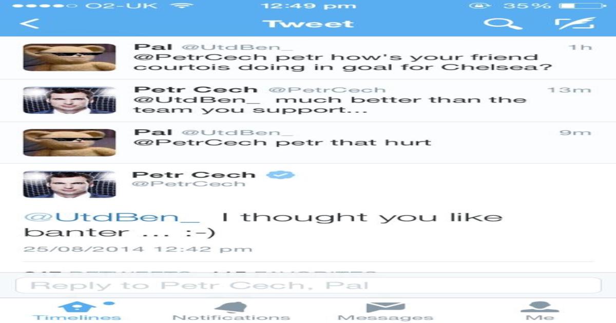 Фанат «Манчестер Юнайтед»: «Петр Чех, как твой друг Куртуа справляется в воротах «Челси»?»
