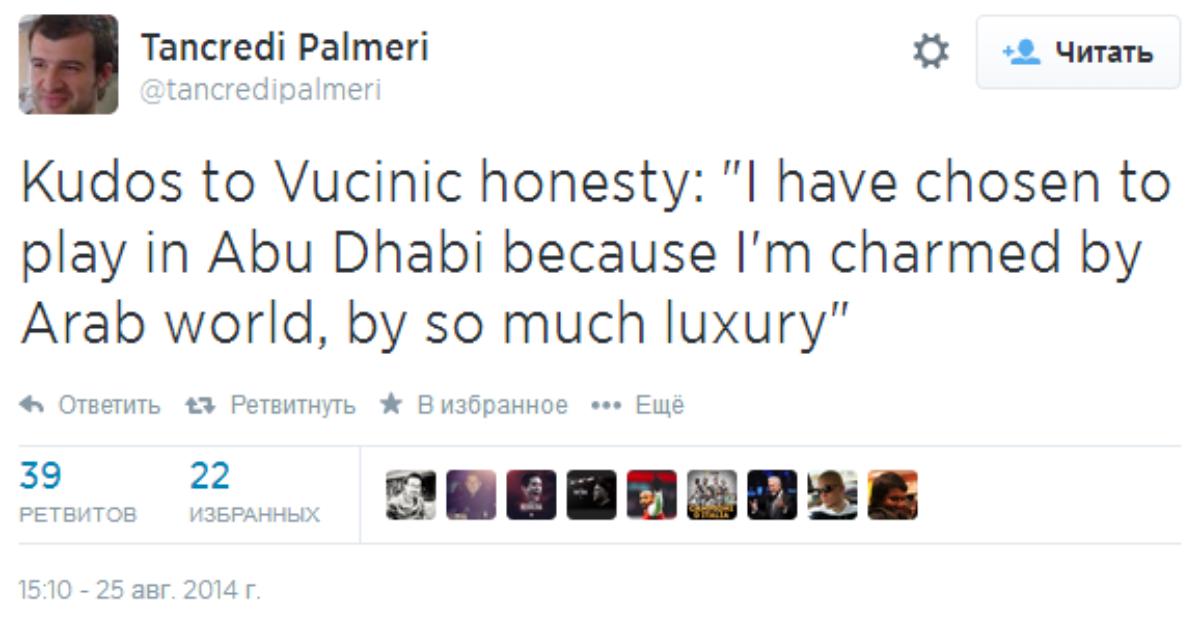 Честность Вучинича заслуживает похвалы: "Я согласился на переезд в Абу-Даби, так как меня очаровывает роскошь арабского мира."