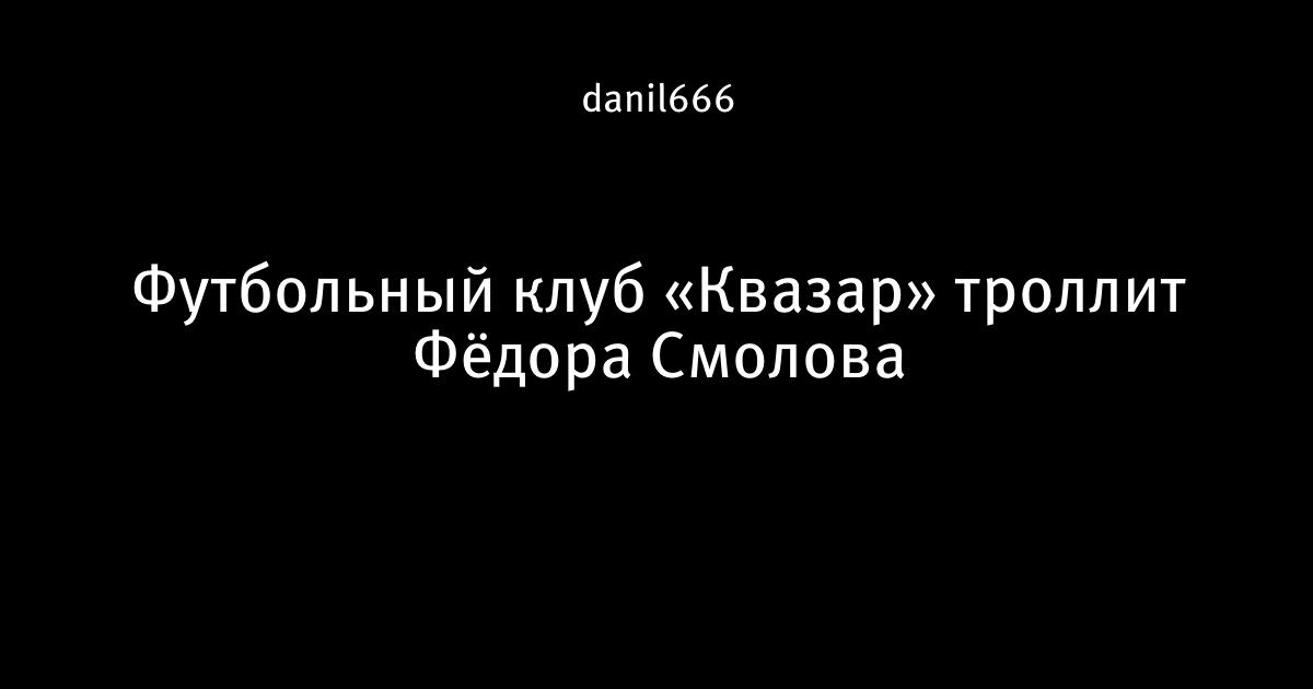 26 августа 2014, 00:41 Футбольный клуб «Квазар» троллит Фёдора Смолова Автор danil666 Этот пост опубликован в блоге на Трибуне Sports.ru. Присоединяйтесь к крупнейшему сообществу спортивных болельщиков! Другие посты блога Телевизор 3.0
