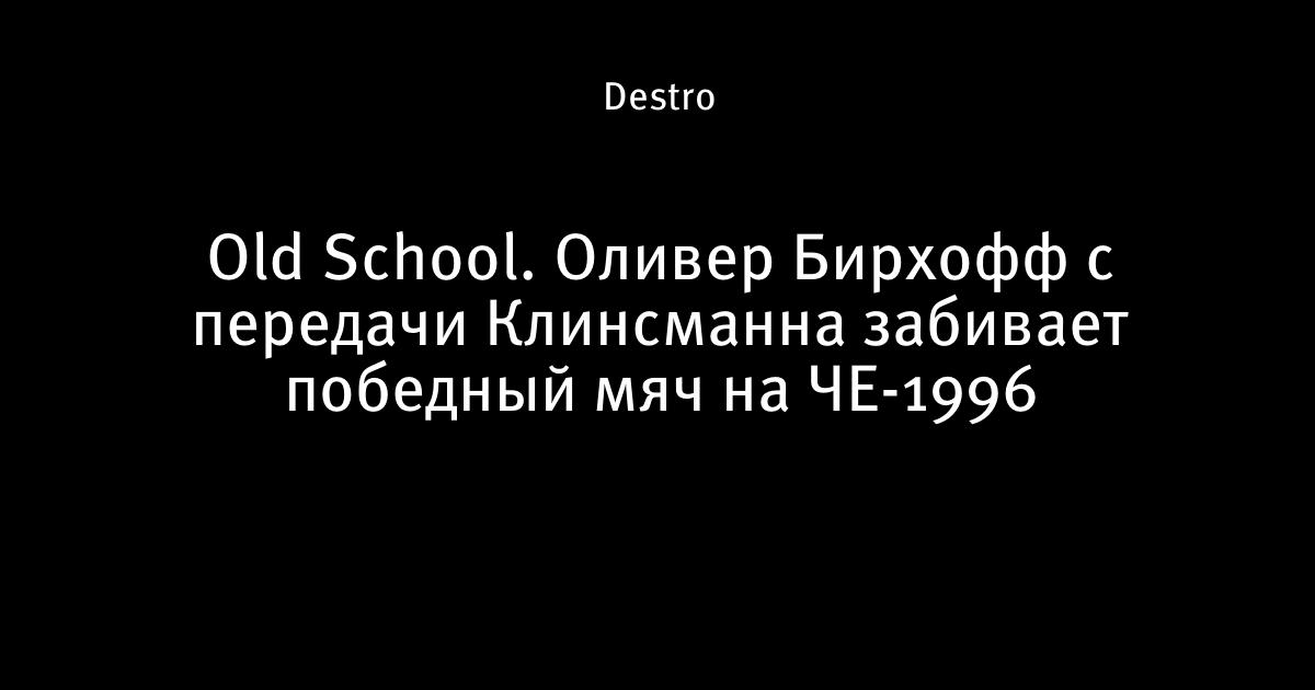 26 августа 2014, 16:51 Old School. Оливер Бирхофф с передачи Клинсманна забивает победный мяч на ЧЕ-1996 Автор Destro Этот пост опубликован в блоге на Трибуне Sports.ru. Присоединяйтесь к крупнейшему сообществу спортивных болельщиков! Другие посты блога Гифка Юрген Клинсманн Оливер Бирхофф