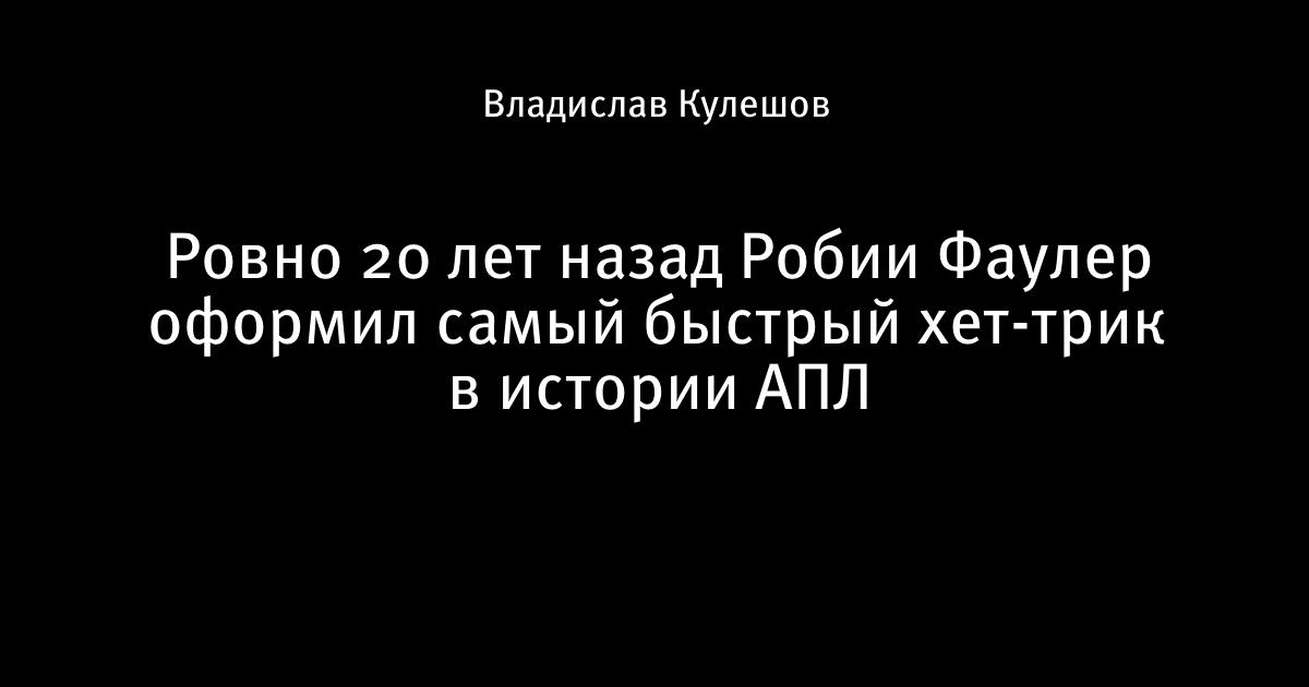 Ровно 20 лет назад Робии Фаулер оформил самый быстрый хет-трик в истории АПЛ
