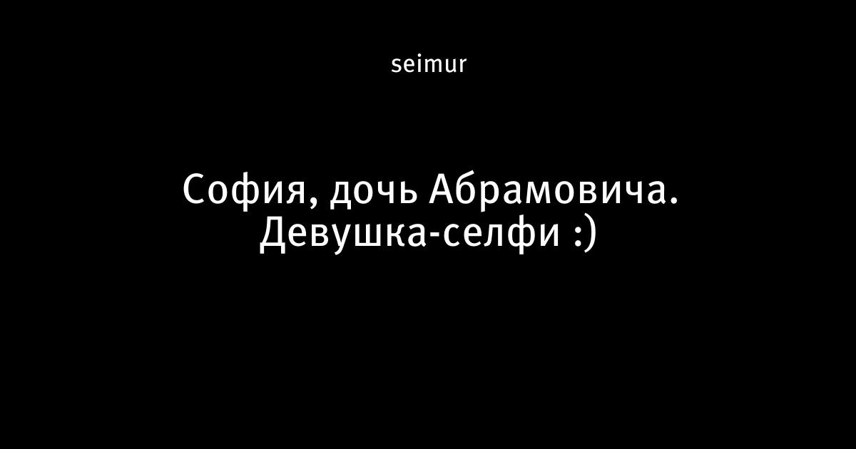 28 августа 2014, 15:10 София, дочь Абрамовича. Девушка-селфи :) статья Автор seimur Этот пост опубликован в блоге на Трибуне Sports.ru. Присоединяйтесь к крупнейшему сообществу спортивных болельщиков! Другие посты блога Девушка дня
