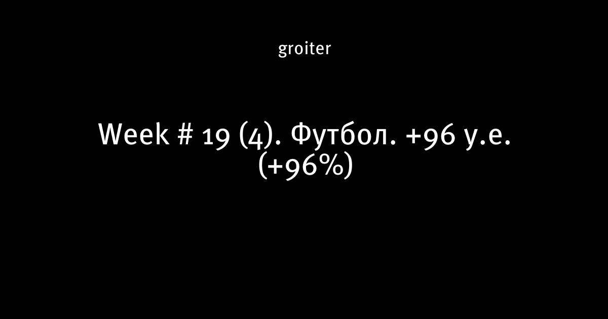Week # 19 (4). Футбол. +96 у.е. (+96%)