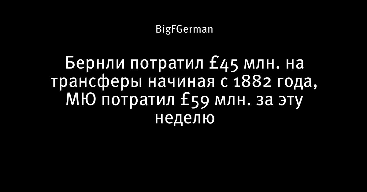 30 августа 2014, 19:32 Бернли потратил £45 млн. на трансферы начиная с 1882 года, МЮ потратил £59 млн. за эту неделю Автор BigFGerman Этот пост опубликован в блоге на Трибуне Sports.ru. Присоединяйтесь к крупнейшему сообществу спортивных болельщиков! Другие посты блога Телевизор 3.0