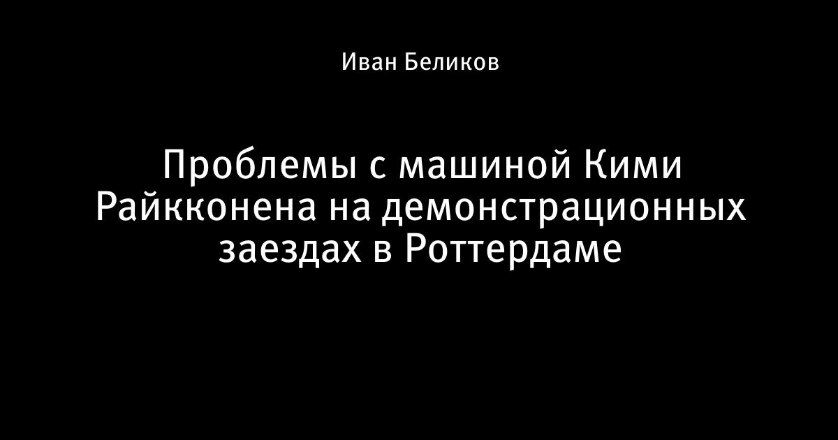 1 сентября 2014, 12:32 Проблемы с машиной Кими Райкконена на демонстрационных заездах в Роттердаме 1 Автор Иван Беликов Этот пост опубликован в блоге на Трибуне Sports.ru. Присоединяйтесь к крупнейшему сообществу спортивных болельщиков! Другие посты блога Крутой поворот Феррари Кими Райкконен видео Формула-1