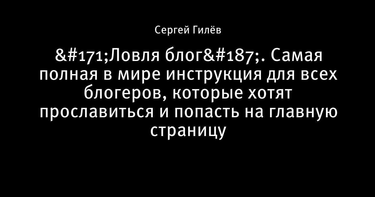 «Ловля блог». Самая полная в мире инструкция для всех блогеров, которые хотят прославиться и попасть на главную страницу